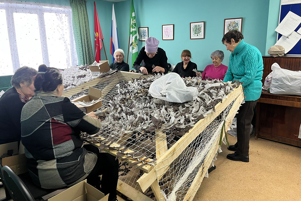 Серебряные волонтёры из деревни Надеждино продолжают помогать участникам СВО. На сегодняшний день добровольцами сплетено более 130 маскировочных сетей и это весомый вклад в наше общее дело.