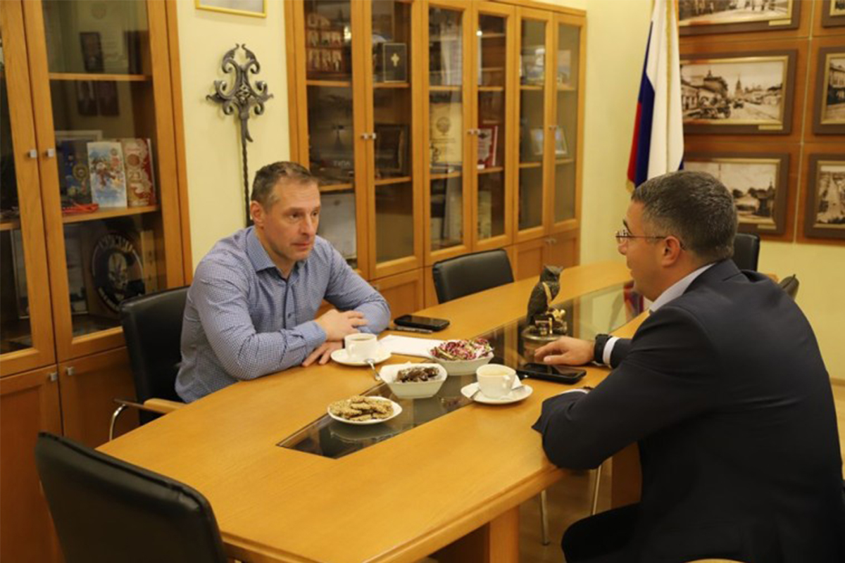 Глава города Тулы Алексей Эрк вместе с наставляемым в рамках проекта «Герой 71» участником спецоперации Сергеем Красильниковым обсудили планы на второй этап стажировки.