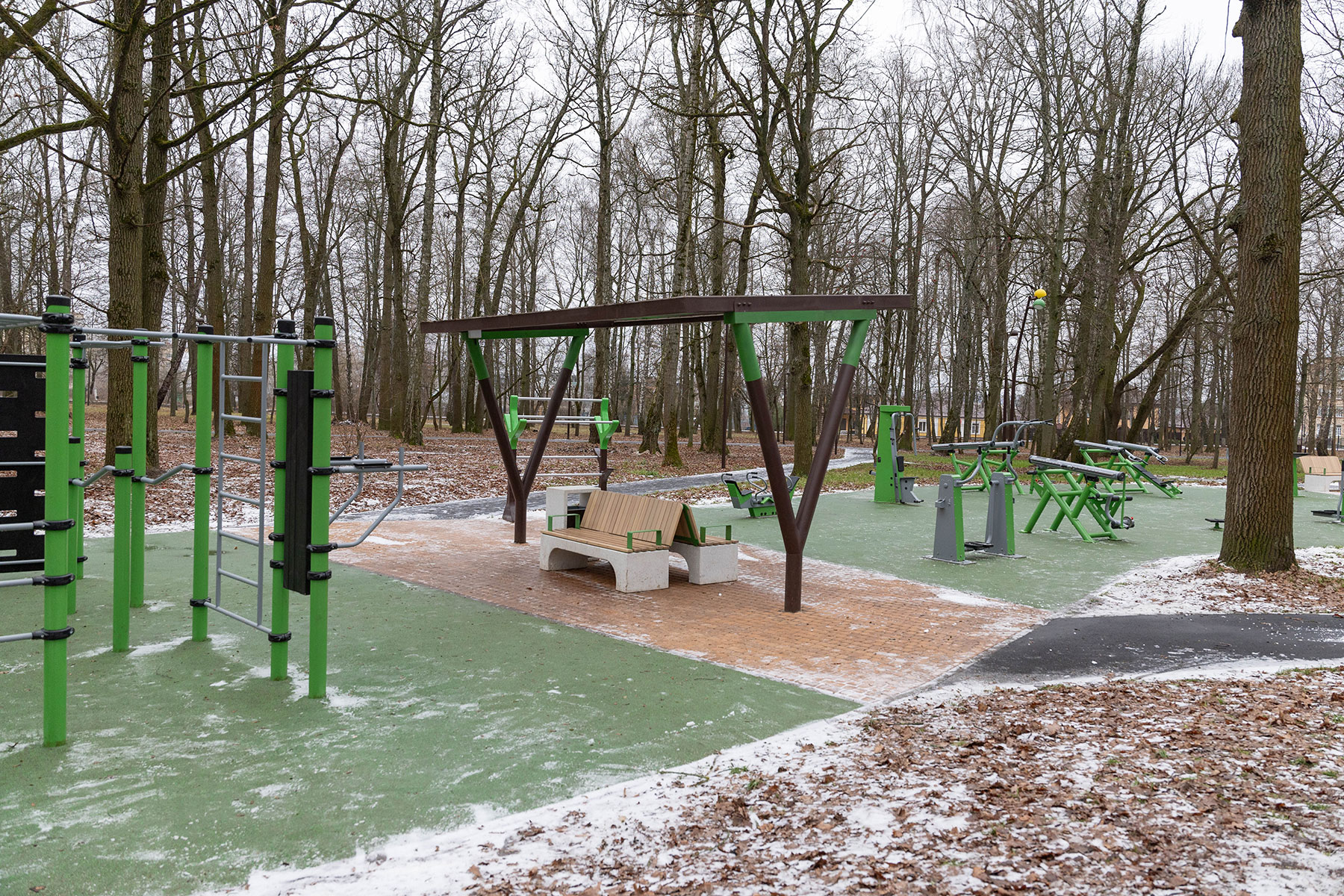 Также обустроена спортивная зона с тренажерами, памп-трек, площадка для дрессировки и выгула собак, сцена, арт-объекты в лесной тематике. Размещены образовательные стоянки с информацией о растениях леса и его обитателях, новые кормушки для птиц и белок. Установлено современное освещение и видеонаблюдение. Кроме того, опилены аварийные деревья, заменена сеть водоснабжения, установлен памятник «Знамя», новое ограждение, реконструирована стелы.