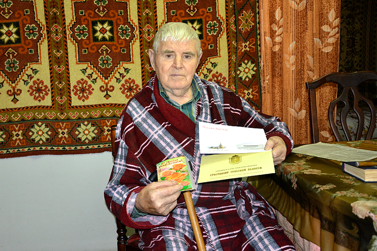 12 января труженику тыла в годы Великой Отечественной войны, ветерану труда Александру Григорьевичу Ариничеву в его доме на улице Красноармейская в Дубне ведущий специалист отдела социальной защиты населения по Дубенскому району Ольга Назарова вручила поздравительные адреса от Президента России Владимира Путина, губернатора Тульской области Дмитрия Миляева и главы МО Дубенский муниципальный округ Кирилла Гузова с 92-летием со дня рождения. Дело в том, что теперь эти заслуженные люди после 90 лет